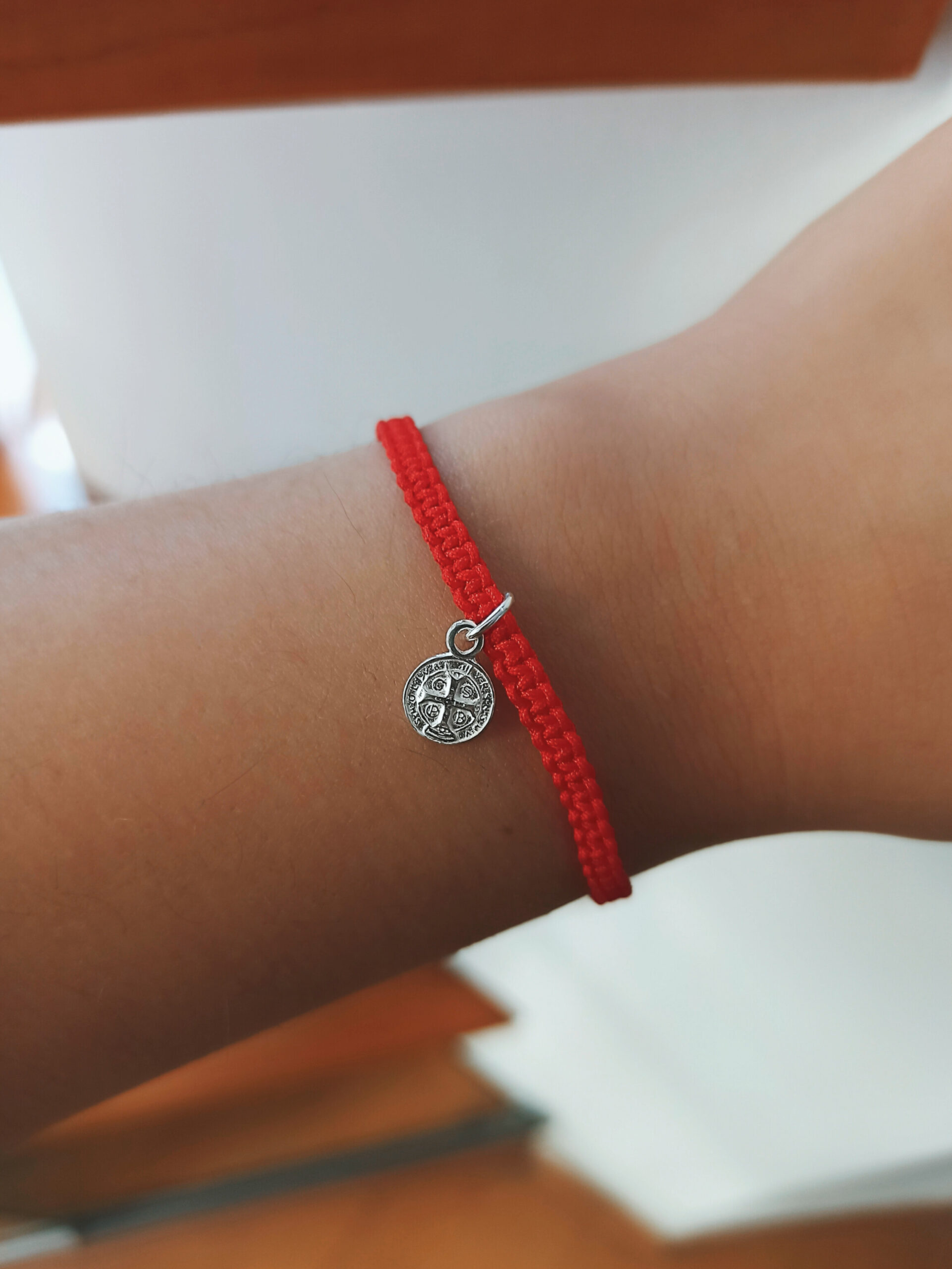 Pulsera de hilo rojo tejido artesanal con dije de plata 925