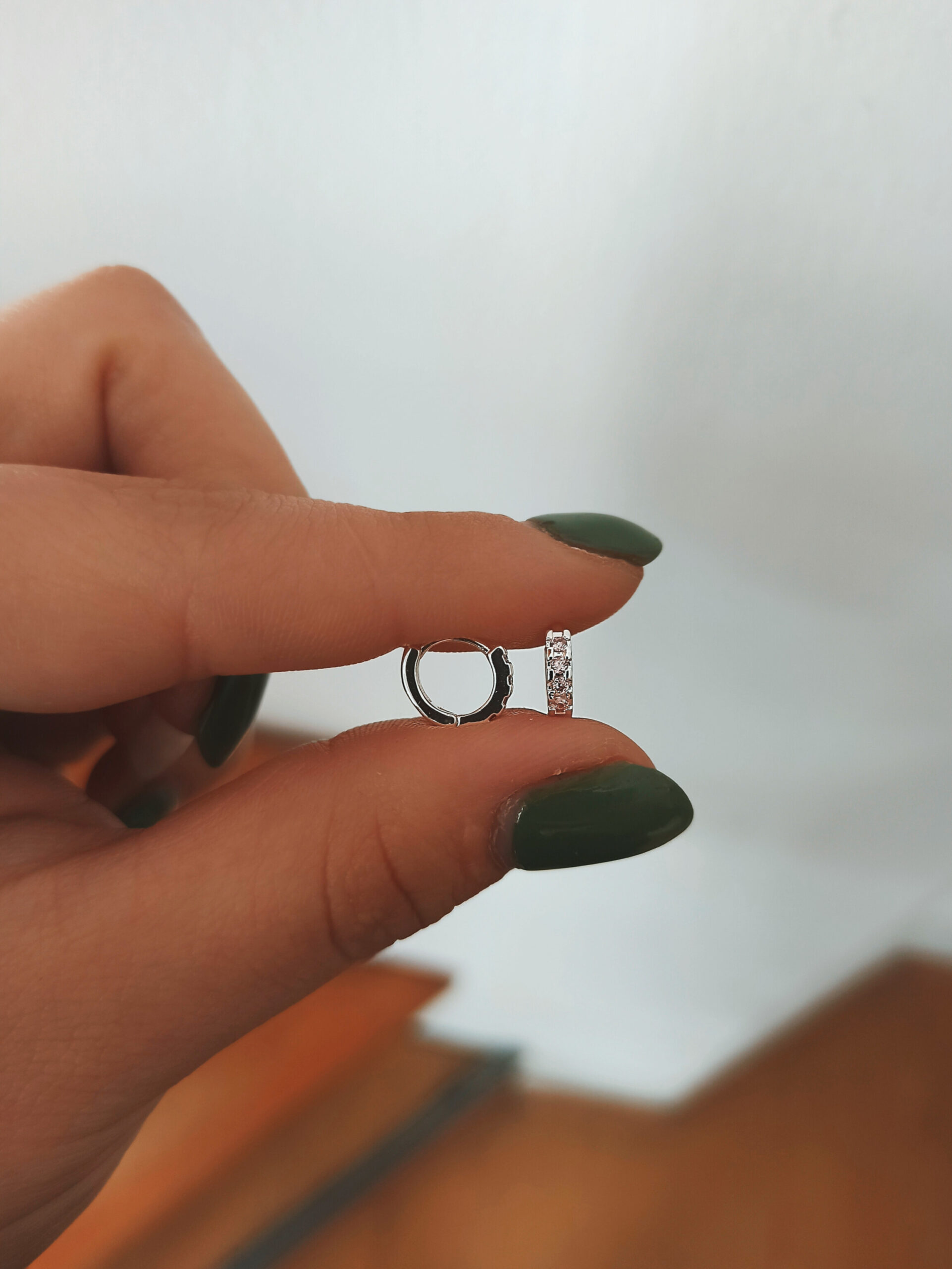 Argollitas click de acero blanco con cubics rosas