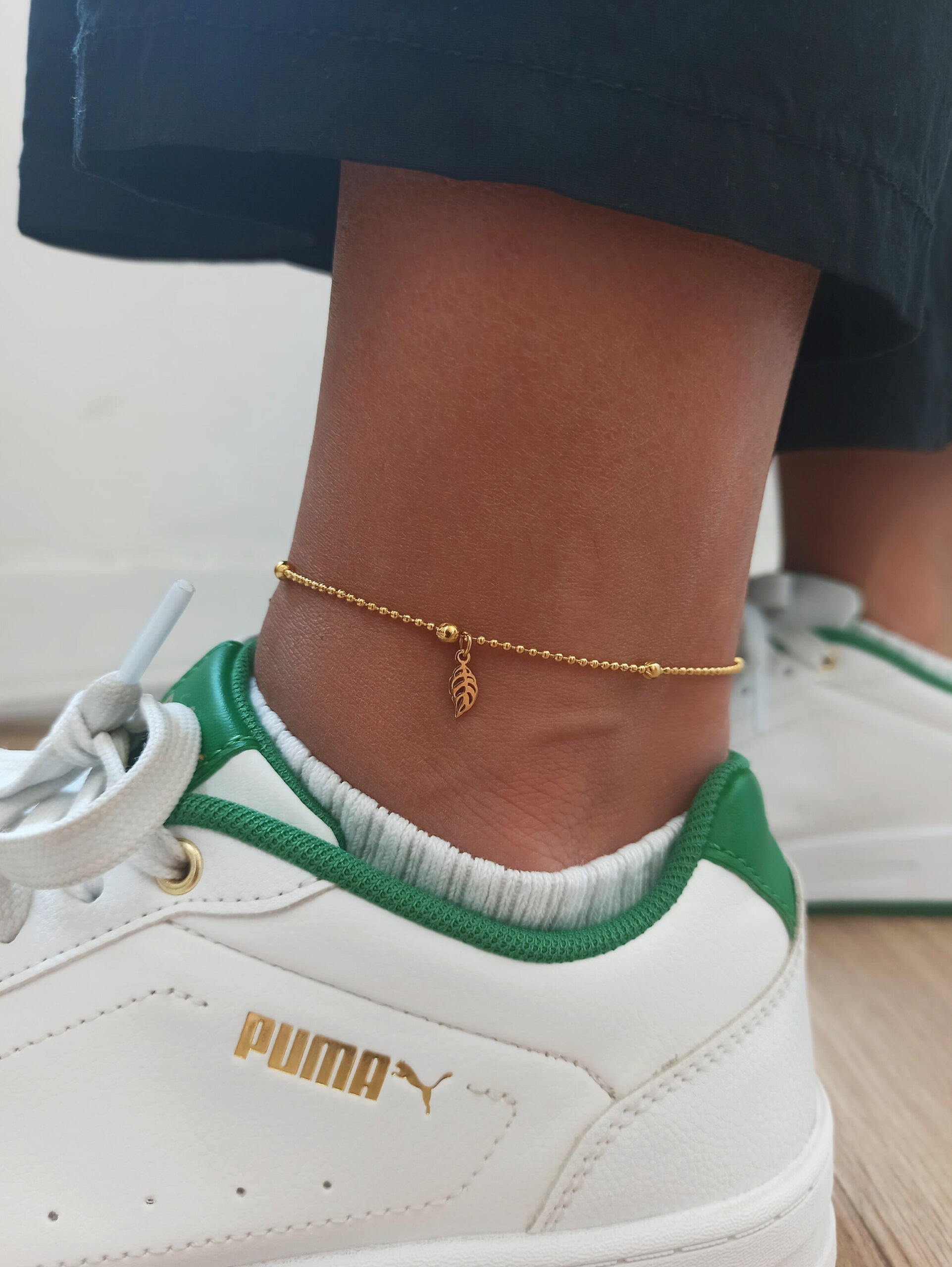Tobillera de acero dorado de 25cm de largo.